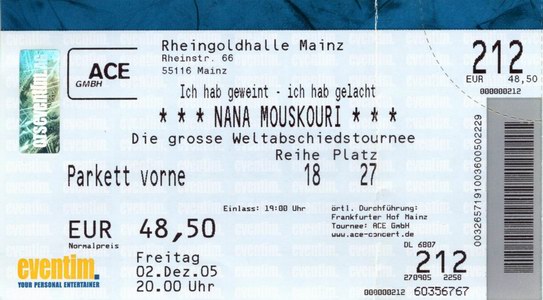 | 12.12.2005 | Mainz | Rheingoldhalle (wurde vom 02.12. verlegt !) | D | O | ||||